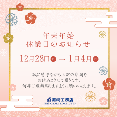 年末年始休業日のお知らせ💡